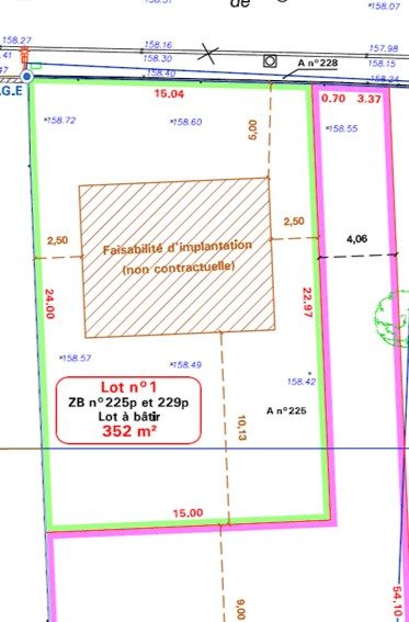 En Lot avant offrant 15 mètres de façade (dont 2,5 mètres de recul minimum par rapport aux limites séparatives soient, 10 mètres de façade constructible).