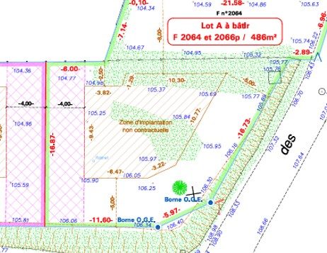 Situé en Zone UBb Implantation en retrait de 5 mètres de la voie. Possibilité d’implantation sur une limite puis retrait de 2,5 ou 8 mètres si fenêtres. Hauteur de 8,5 mètres au faîtage possible. Terrain libre de constructeur.